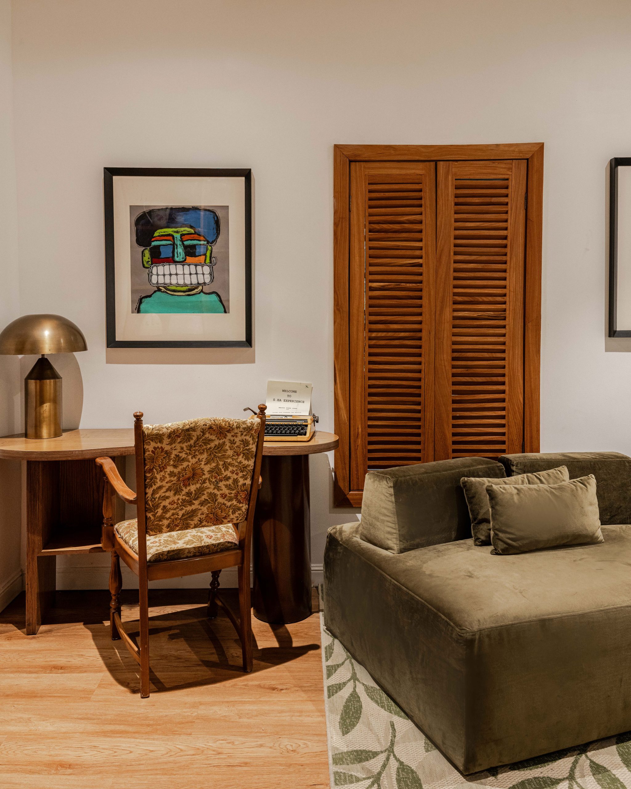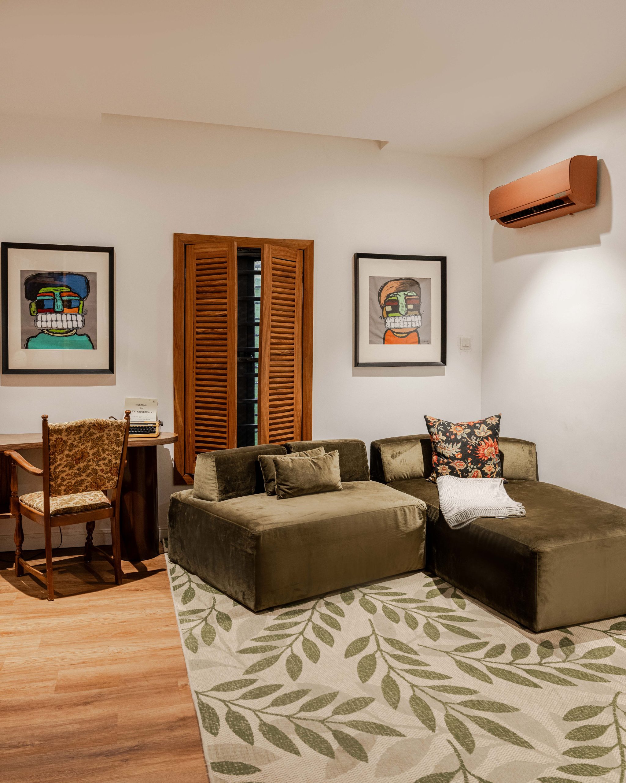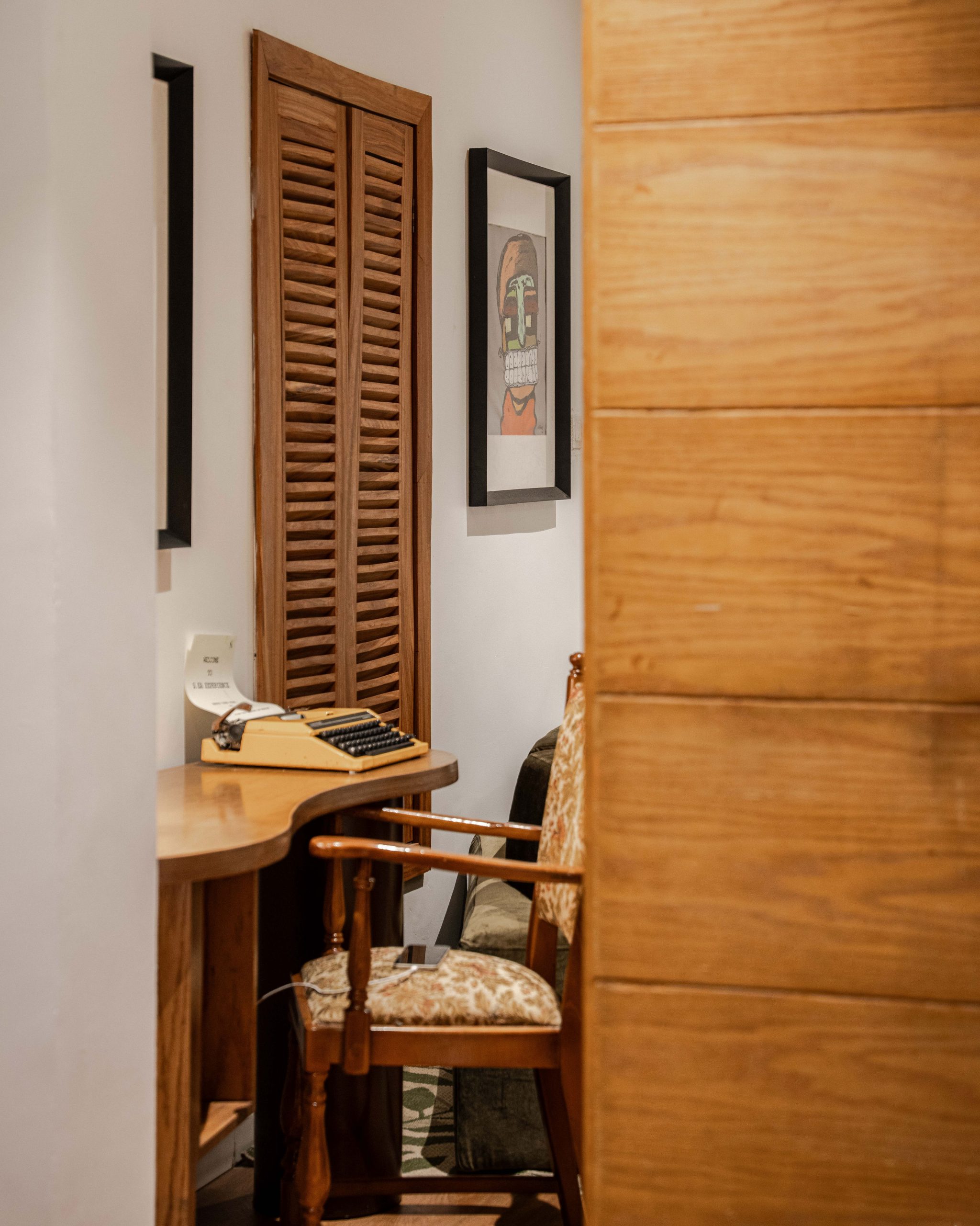 Chioma Okon was born in the north and grew up in delta state. She is popularly known as CO and her room overlooks the garden with sun rays beaming through her wooden shutters every morning and bathroom is carefully designed with throwback terrazzo floors, glass blocks as her divider into her walk-in shower, and a collection of art and indoor plants. Her art collection goes beyond wall art to sculptures and custom-made rugs for her bedroom with her classic motorcycle headlamp dropping on her bedside.